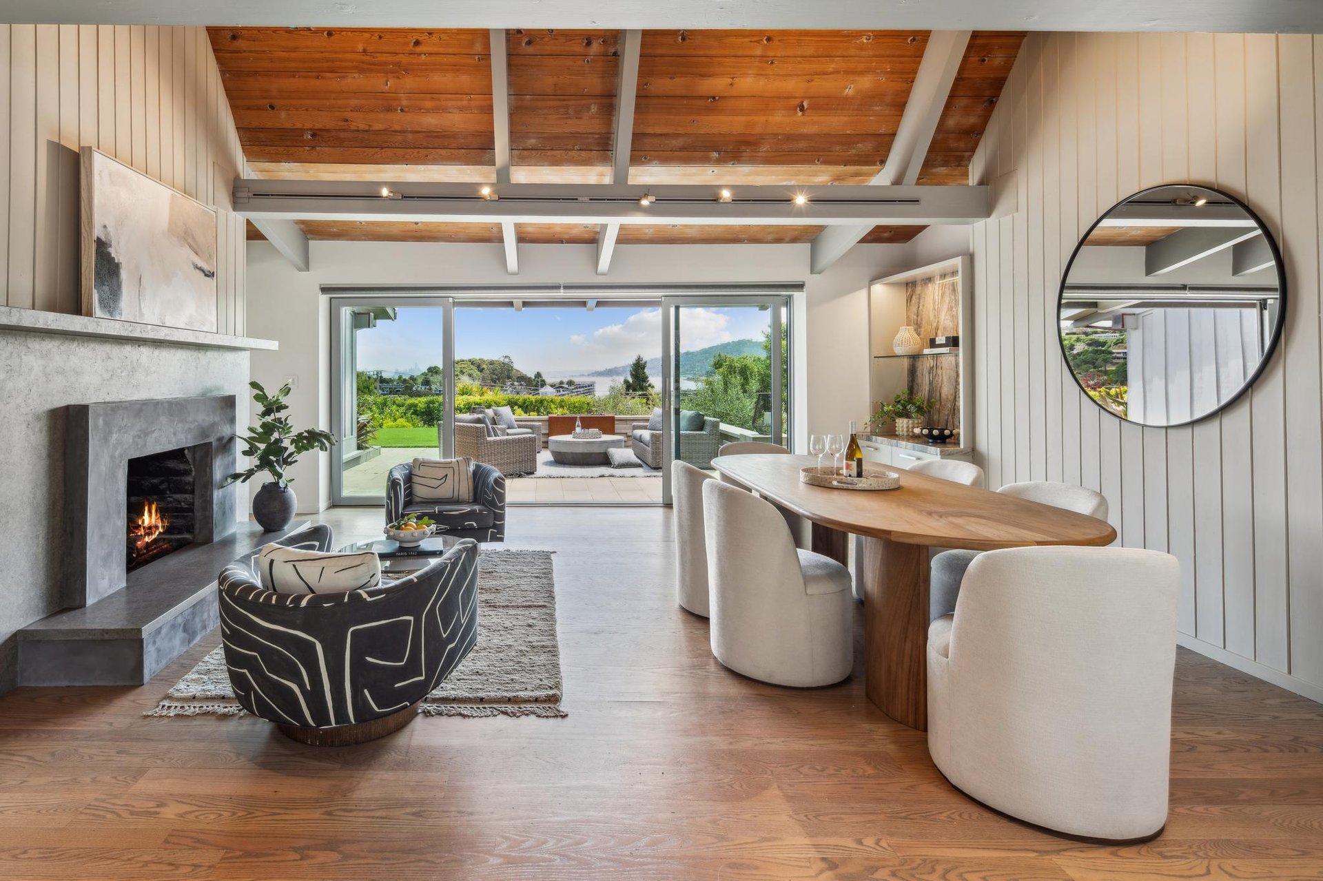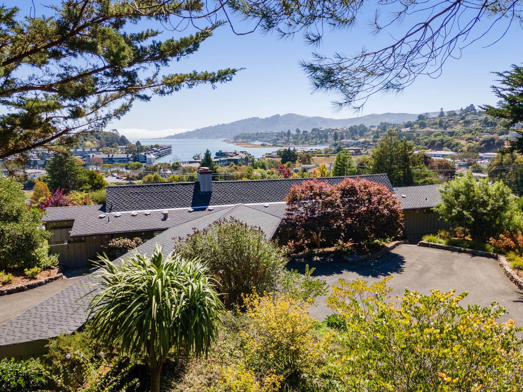 This exceptional turnkey mid-century home is located at the end of a private cul-de-sac with estate-like grounds on close to ½ an acre of level land, and features a charming and unique circular motor court, mature plantings and manicured landscaping. This mostly one-level 4BD, 3BA home has seamless flow with gorgeous views of San Francisco and the Bay from nearly every room.